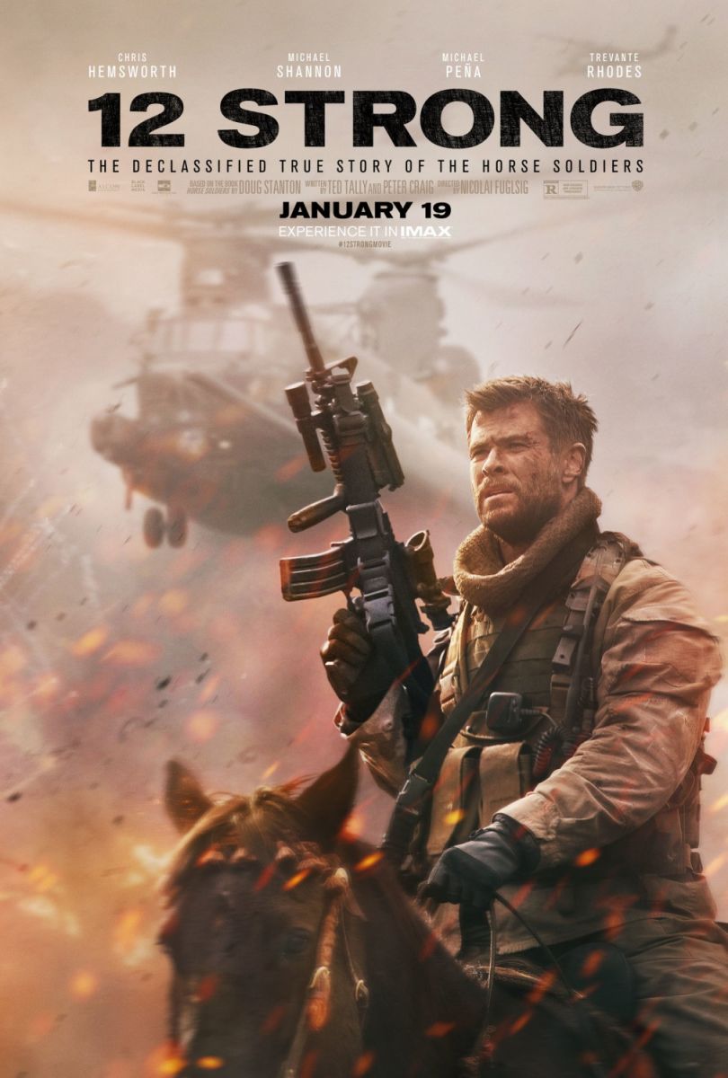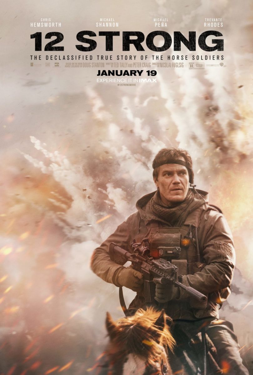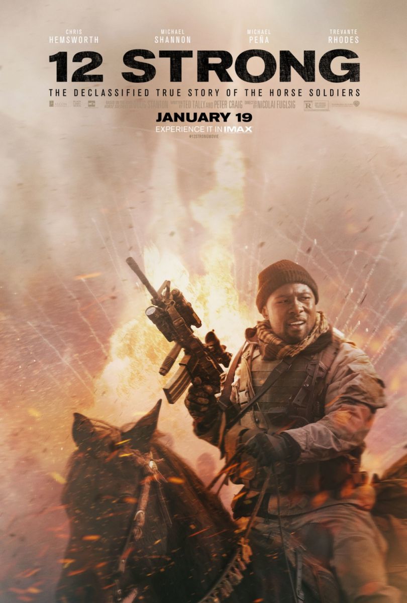 Четыре персонажных постера военного боевика «Кавалерия» с участием Криса Хемсворта, Майкла Шеннона, Майкла Пеньи и Треванте Роудса. Сюжет основан на реальных событиях и посвящён спецагентам ЦРУ, которые сразу после трагедии 11 сентября отправляются в Афганистан для борьбы с террористами.