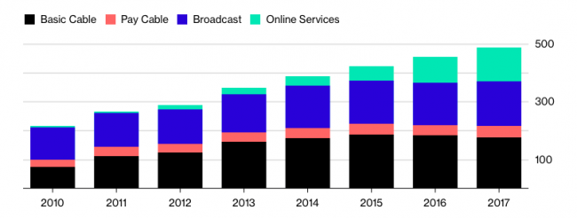 Вещатели тратят больше средств, чем когда-либо, на производство рекордного количества шоу (153 в 2017 году), чтобы остановить отток зрителей, наблюдающийся в последнее время.