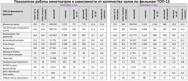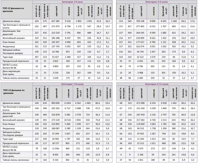 Среди семи лучших кинотеатров страны с разным количеством залов «Движение вверх» показало долю сборов 27-55%.