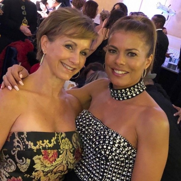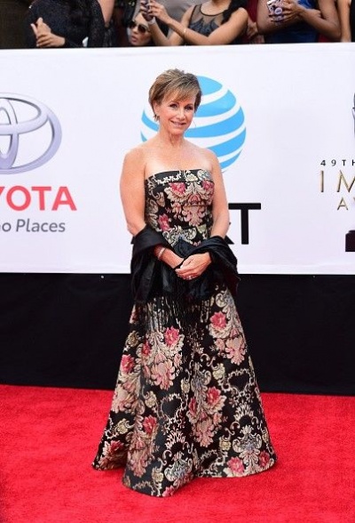 На красной дорожке 57-летняя Габриель Картерис появилась в платье в пол с открытыми плечами.
