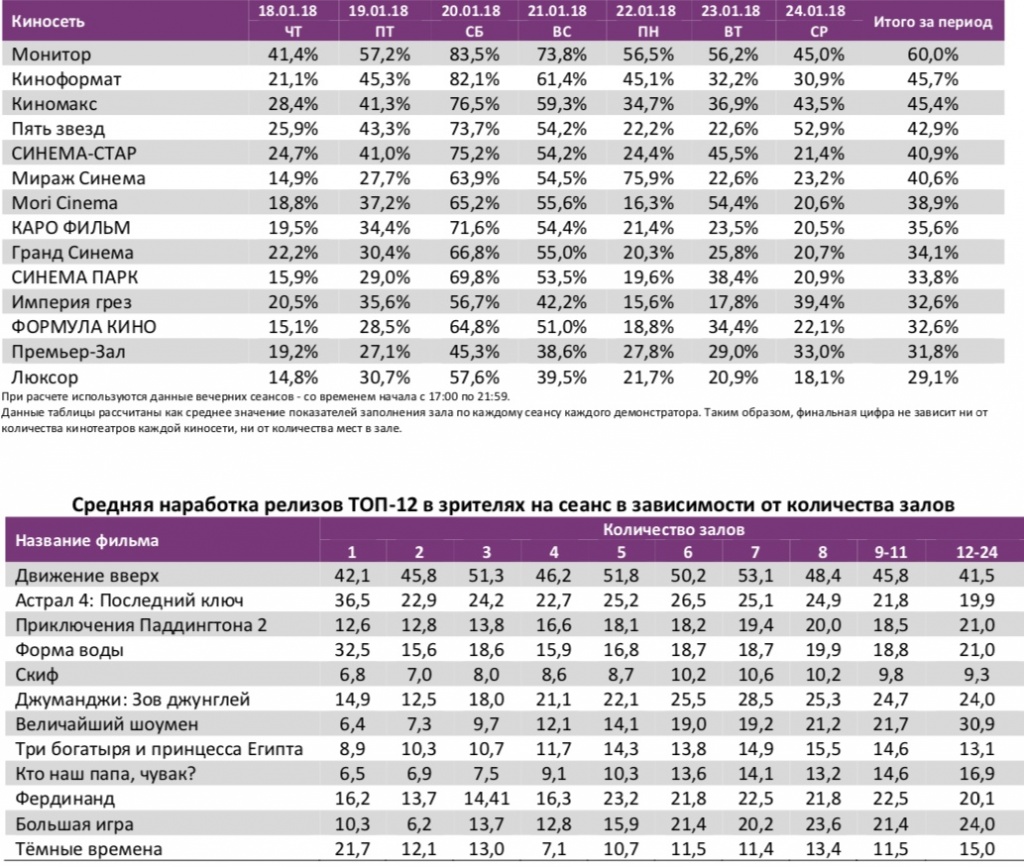 Лидером по заполняемости на «Движении вверх» по-прежнему остаётся киносеть «Монитор».