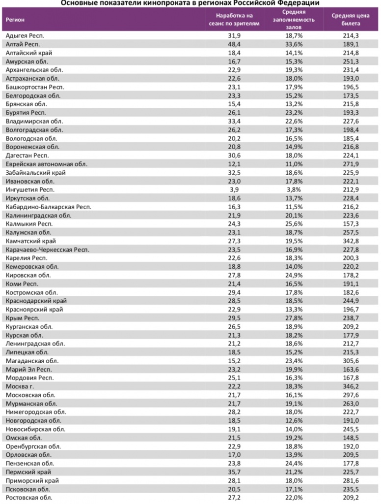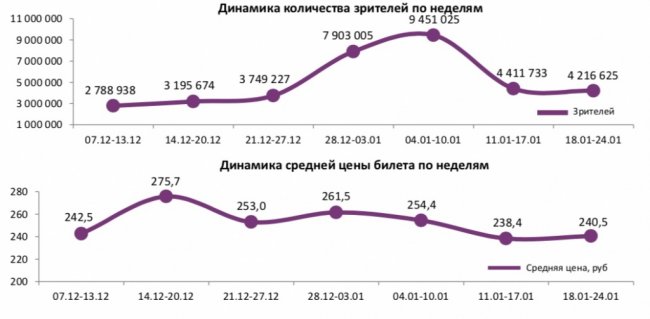 Средняя цена билета в российских кинотеатрах составила 241 рубль.