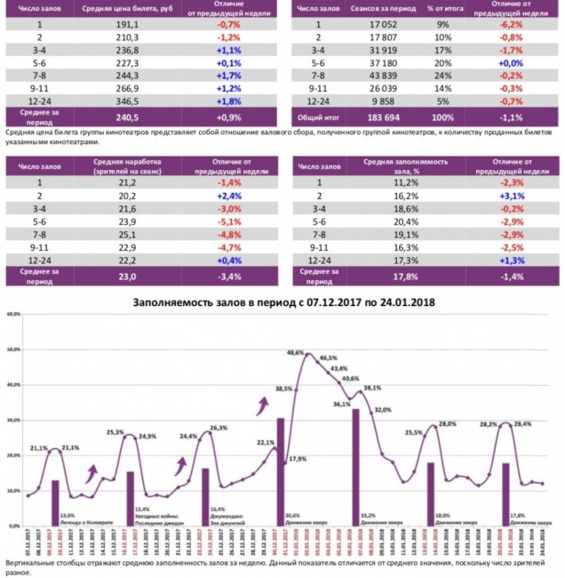 Заполняемость залов оказалась близкой к показателям прошлой недели.