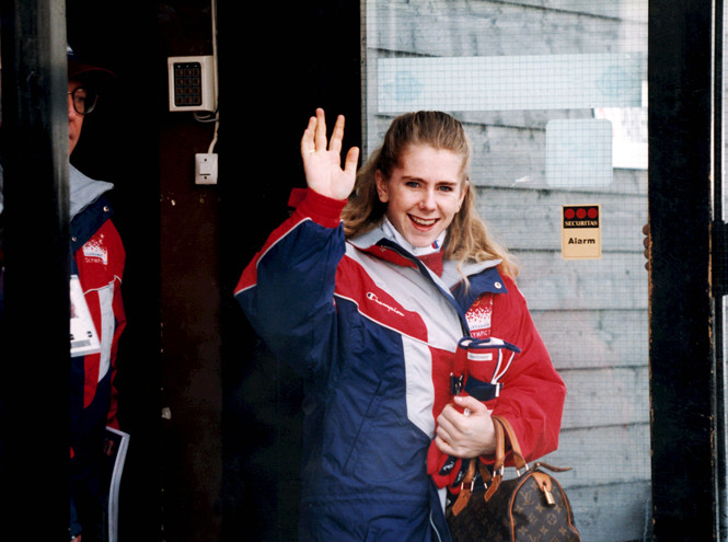 Тоня прибывает на Олимпиаду в Лиллехаммер (с сумкой Louis Vuitton, между прочим)
