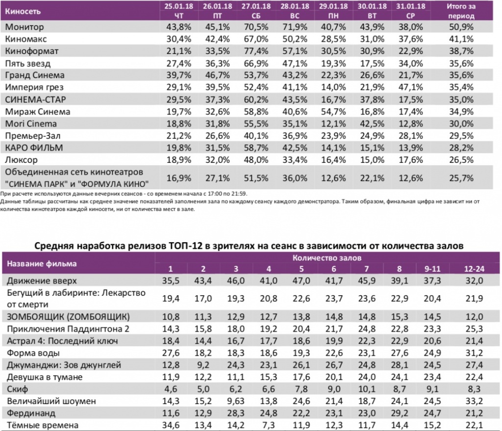 Лидером по заполняемости на «Движении вверх» по-прежнему остаётся киносеть «Монитор» (51% против 41% у «Киномакса»).