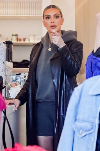 И хотя Ким считается американской иконой стиля, на этот раз вкус звезды ее приподнял. Она была замечена в серых велосипедках и объемной толстовке того же оттенка, а поверх знаменитость накинула черный кожаный плащ до пола. Свой "стильный" образ она дополнила прозрачными босоножками на каблуке.