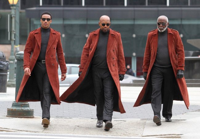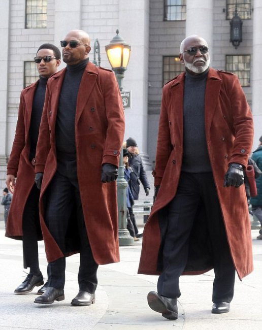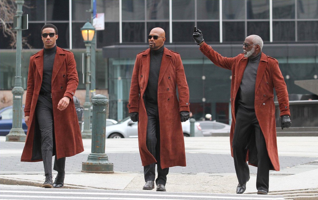 Джесси Ашер, Сэмюэл Л. Джексон и Ричард Раундтри на фото со съёмок перезапуска «Шафта», проходящих в Нью-Йорке. Режиссёрское кресло проекта занимает Тим Стори (дилогия «Фантастическая четверка»).