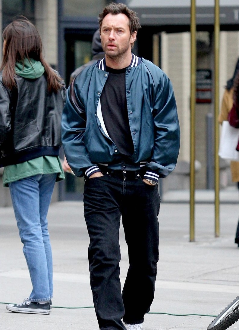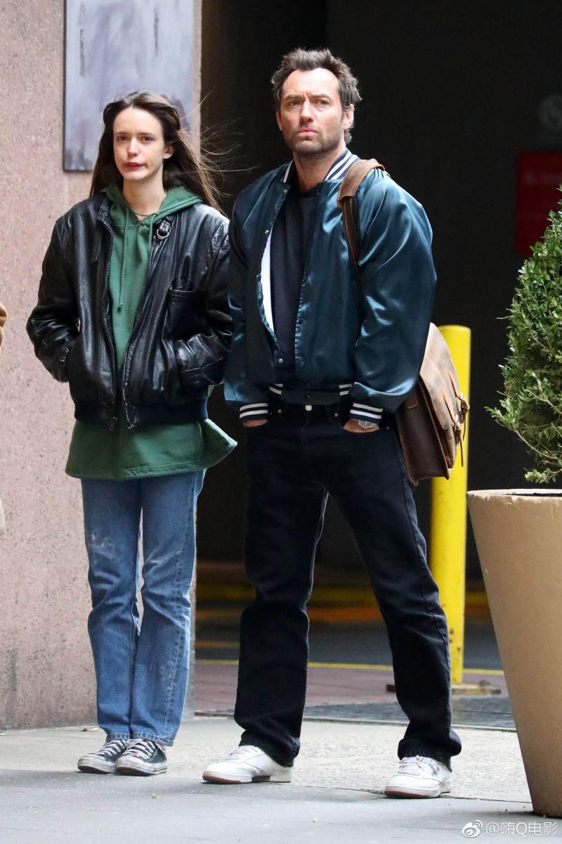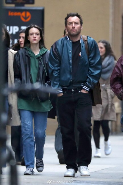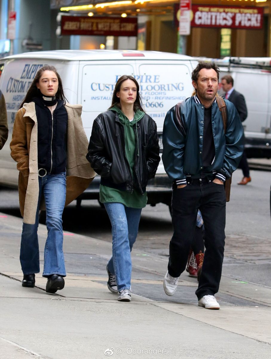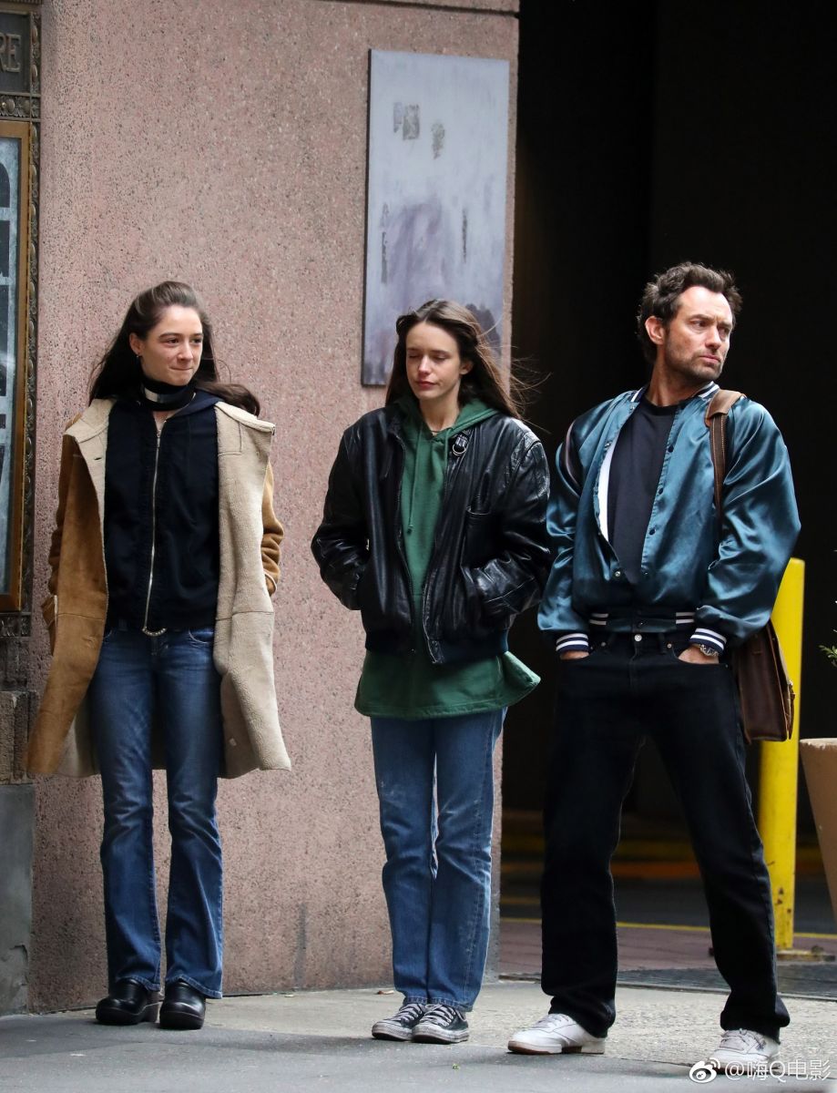 Джуд Лоу, Рэффи Кэссиди («Убийство священного оленя») и Стэйси Мартин («Нимфоманка») на свежих фото со съёмок музыкальной драмы «Голос света», проходящих в Нью-Йорке. Главную роль в картине исполняет Натали Портман.