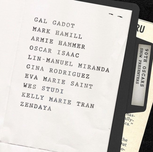 «Независимо от того, возвращаются ли они на «оскаровскую» сцену или появляются на ней впервые, каждый из этих артистов привносит свою собственную энергию, и это позволит сделать вечер незабываемым», - прокомментировали продюсеры церемонии Майкл Де Люка и Дженнифер Тодд. В свою очередь, один из «вручантов», актер Марк Хэмилл, уже пошутил в своем Инстаграм: «Заметки. 1. Говорить достаточно быстро, чтобы меня не заглушил оркестр, 2. Никаких шуток в стиле «R2 – Me Too», 3. После открытия конверта ни в коем случае не произносить «Ла-Ла Ленд».