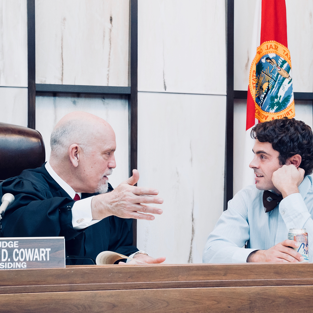 Сценарий фильма за авторством Майкла Верви посвящён нездоровым отношениям между печально известным психопатом и насильником Тедом Банди (Эфрон) и его девушкой Элизабет Клопфер (Лили Коллинз). Банди был харизматичен и привлекателен, обходительно вёл себя с женщинами, что значительно помогало маньяку во время поиска новых жертв (всего их было около 30). При этом девушка Теда на протяжении многих лет отрицала его причастность к зверским убийствам, но в итоге лично сдала насильника полиции. В 1979 году состоялся суд над Банди, где председательствовал бывший офицер полиции Майами Эдвард Коварт (Джон Малкович). В результате маньяку вынесли смертельный приговор, однако казнили его лишь в 1989-м, через два года после смерти Коварта. Судебный процесс транслировался по национальному телевидению и привлёк внимание СМИ, поскольку Банди сам представлял свои интересы, а также спорил с судьёй и прокурором.