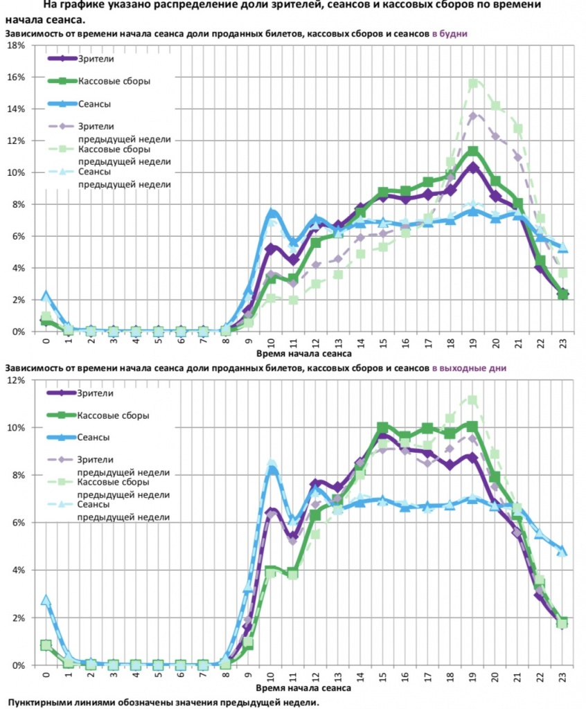 Статистика Фонда кино отражает информацию об основных результатах проката, лидерах недели по сборам и наработке на сеанс, показателях работы кинотеатров, эффективности репертуарного планирования, а также о соотношении долей по сборам, зрителям и сеансам в рамках данного периода.