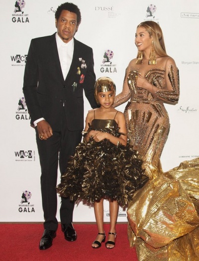 Появление семьи Бейонсе изрядно удивило гостей мероприятия стильными нарядами. Так, рэпер и продюсер, который обычно выбирает спортивную одежду, на Wearable Art Gala пришел в изысканном черном костюме, совместив его с белой рубашкой. А Блу Айви появилась на аукционе в стильном пышном платье, которое дополнила необычным украшением на голове. Ее "лук" уже сравнили с Клеопатрой.