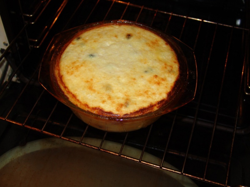 За 5-10 минут до готовности открываем крышку формы. Также можно добавить сверху жирные сливки и немного сахара, чтобы образовалась золотистая корочка.