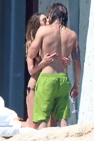 Однако фотографы не оставили их в покое. Супермодель и популярного гитариста застали в достаточно откровенном виде.