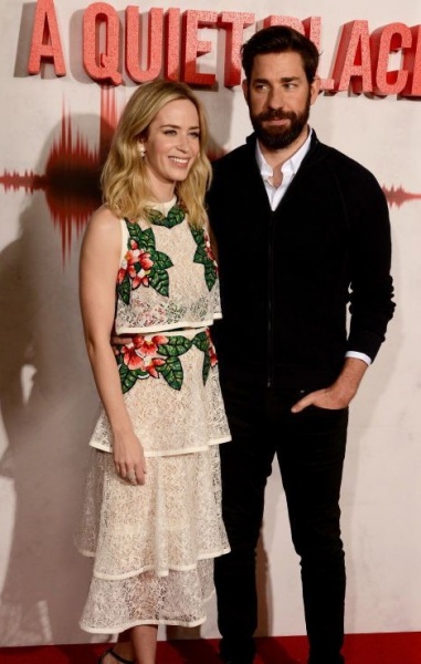Эмили сыграла главную роль в фильме "Тихое место", режиссером которого стал ее муж Джон Красински. На лондонскую премьеру 35-летняя знаменитость приехала в красивом белом платье с интересным принтом из кутюрной коллекции Elie Saab. Образ дополнила темно-зелеными бархатными туфлями на каблуках, серьгами-подвесками с камнями и макияжем в натуральных оттенках.