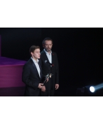 церемония открытия 40-го Московского Международного кинофестиваля, вручение почетного приза «За выдающийся вклад в мировой кинематограф» Олегу Табакову, вручает Владимир Машков Павлу Табакову