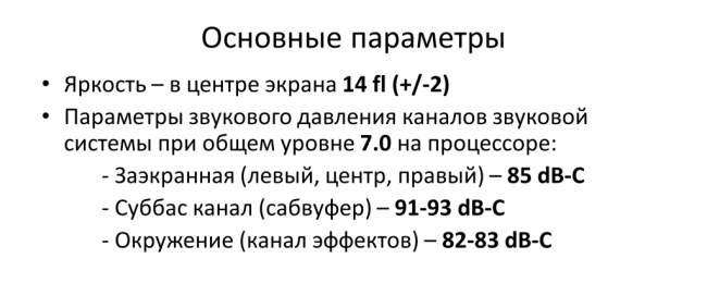 Вопросам стандартизации оценки качества кинопоказа было посвящено выступление Дмитрия Чекалина. В России регламенты качества показа устарели, действует руководство, касающееся еще пленочной проекции. По словам представителя НИКФИ планируется создание современного норматива, опирающегося на мировые стандарты и российские разработки. По параметрам Международной организации по стандартизации (ИСО) действуют следующие стандарты: