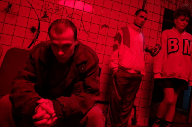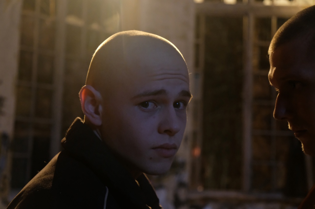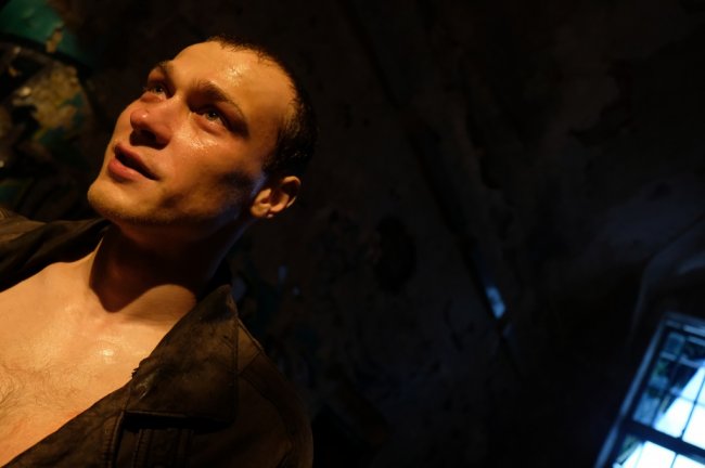 В перерыве между сценами исполнитель главной роли Юрий Борисов с «окровавленными» руками, одетый в олимпийку в стиле 90-х отогревается в специальном вагончике - интерьерные съемки проходят в полуразрушенном здании без окон, и вечером на улице становится прохладно. Артист готовится к своей финальной, по сюжету, сцене, но тем не менее, охотно соглашается дать комментарий.