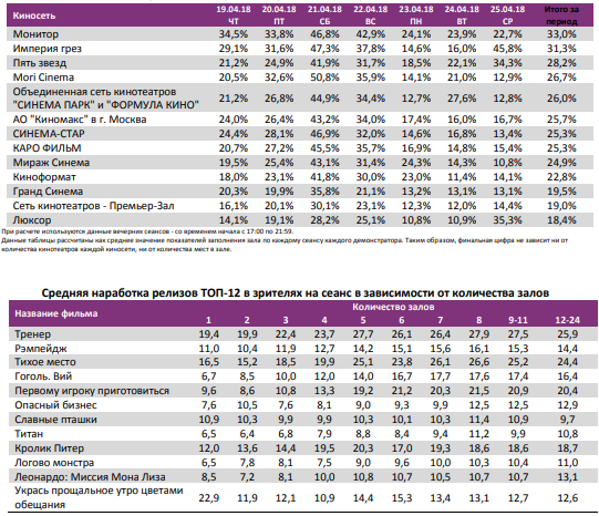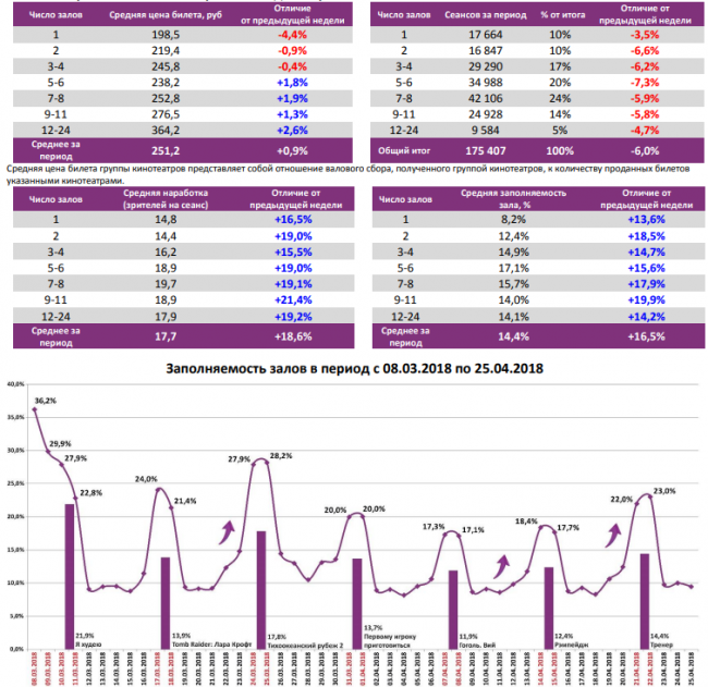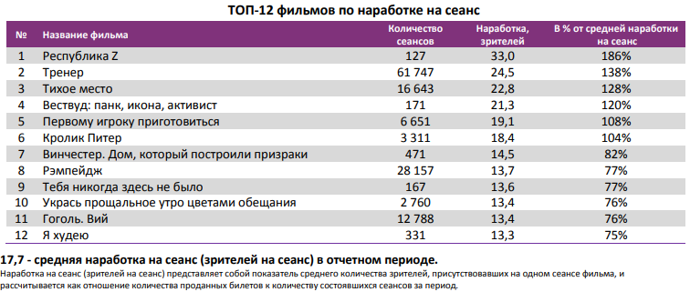 Наработка на сеанс выросла с 15 до 18 зрителей.
