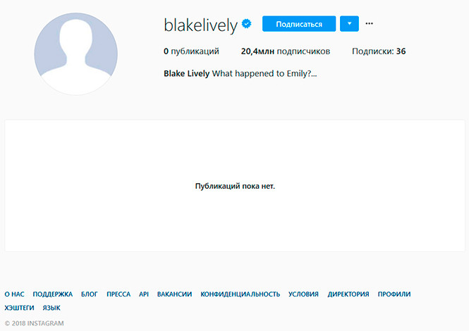 Пустой Instagram-аккаунт Блейк Лайвли удивил 20 млн ее подписчиков