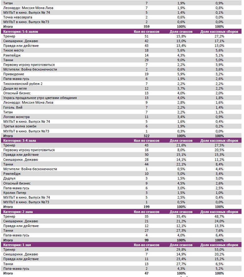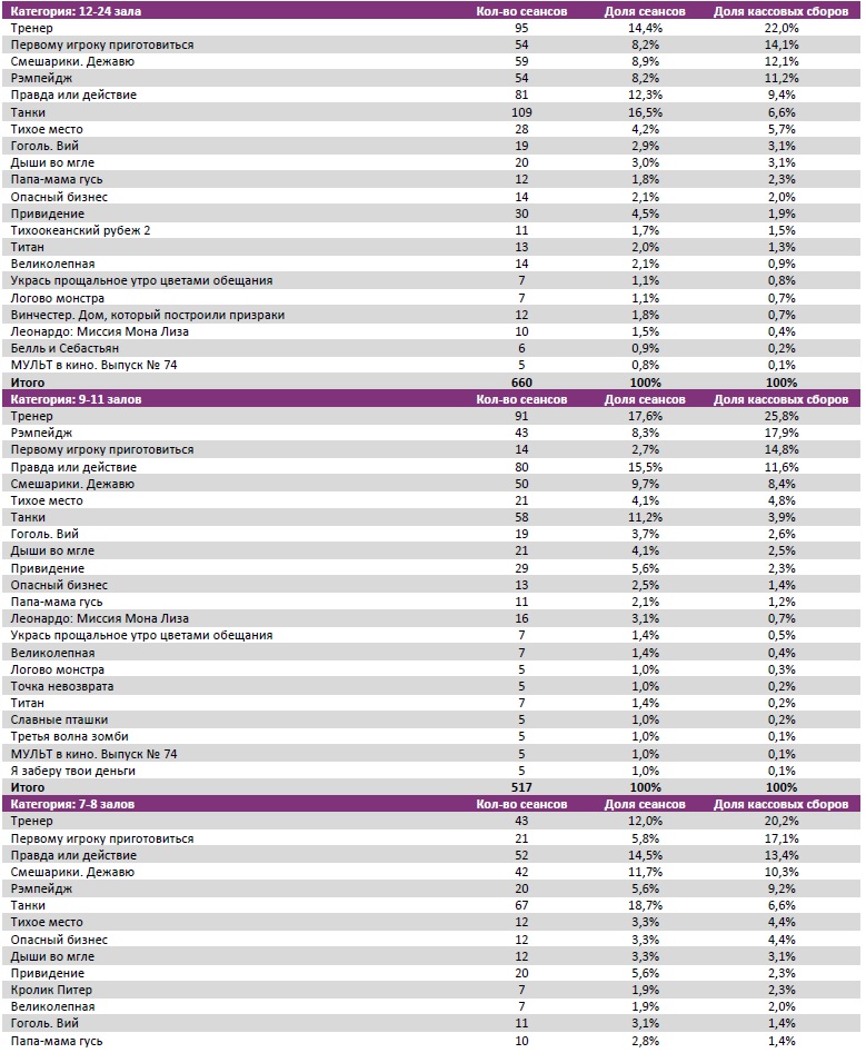На второй неделе «Тренер» был расписан в 568 однозальном кинотеатре. Новые «Смешарики» - в 563, «Танки» - в 323 кинотеатрах.