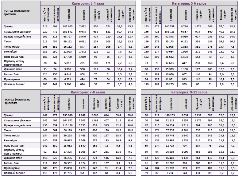 «Тренер» сохранил лидерство во всех семи самых успешных кинотеатрах страны в зависимости от количества залов.
