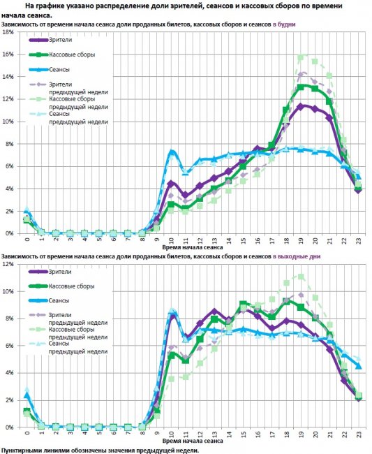 Статистика Фонда кино отражает информацию об основных результатах проката, лидерах недели по сборам и наработке на сеанс, показателях работы кинотеатров, эффективности репертуарного планирования, а также о соотношении долей по сборам, зрителям и сеансам в рамках данного периода.
