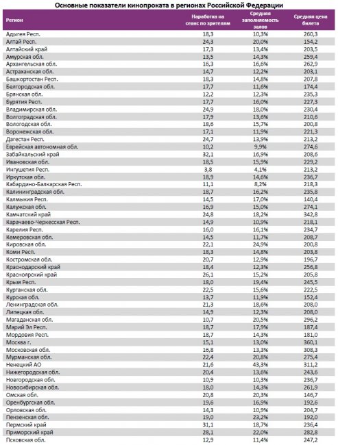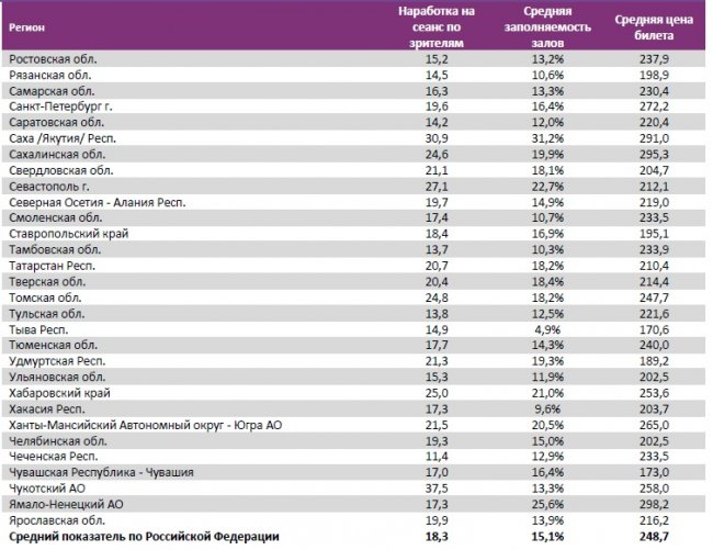 Средняя цена билета осталась на уровне 249 рублей.