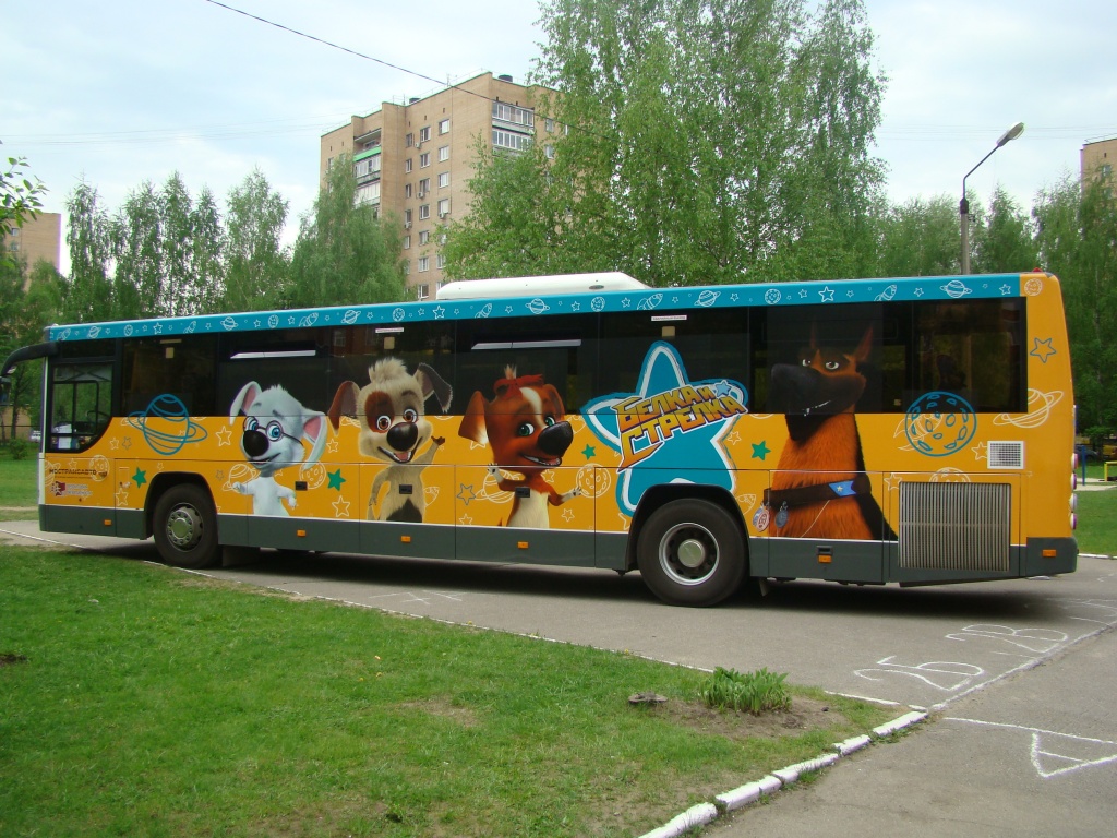 Созданный специально для проекта, автобус Мострансавто с красочными изображениями популярных героев франшизы о звездных собаках «Белка и Стрелка» напомнит водителям о других важных участниках дорожного движения - детях. Яркий автобус с призывом к соблюдению правил дорожного движения будет курсировать в течение летнего и части осеннего периода на маршрутах, соединяющих Балашиху и Москву, а также будет использован для перевозок детей на социальные мероприятия.