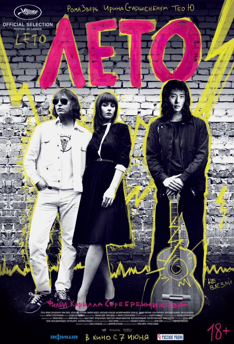 Стал доступен первый постер биографической ленты «Лето» от режиссёра Кирилла Серебренникова, посвящённой истории легендарного рок-музыканта и лидера группы «Кино» Виктора Цоя. События «Лета», описываемого создателями как «сказка о роке, любви и дружбе», разворачиваются в Ленинграде летом 1981 года. Молодой Виктор Цой вместе с Алексеем Рыбиным и Олегом Валинским основывает группу «Гарин и Гиперболоиды», позже сменившую название на «Кино». Через несколько лет песни Цоя станут хитами, группа будет собирать стадионы, а после трагической гибели музыканта его именем назовут стены, скверы, улицы и даже астероид. А пока он играет на бас-гитаре, поёт в электричках и впервые знакомится с теми, кто сыграет в его жизни судьбоносные роли. По словам авторов, сюжет расскажет о малоизвестных фактах из биографии музыканта. Съёмки проекта временно приостановились в августе 2017-го из-за ареста режиссёра Серебренникова, однако в итоге фильм всё равно был завершён. Образ Цоя воплотил южнокорейский актёр Тео Ю («Равные», «В поисках Сеула»), роль лидера группы «Зоопарк» Майка Науменко сыграл Рома Зверь, а его жены Натальи - Ирина Старшенбаум («Притяжение», «Чёрная вода»). На российских экранах картина окажется 7 июня. Первый трейлер байопика «Лето» о Викторе Цое.16.05.2018 На «Кино ТВ» пройдёт трансляция закрытия Каннского фестиваля.05.05.2018 Первый отрывок из байопика о Викторе Цое и группе «Кино».18.04.2018 Байопик Серебренникова о Викторе Цое получил дату релиза.17.04.2018 Андрей Звягинцев войдёт в жюри Каннского кинофестиваля.