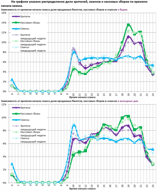 За прошедшую неделю каждый сеанс посещал в среднем 21 зритель.