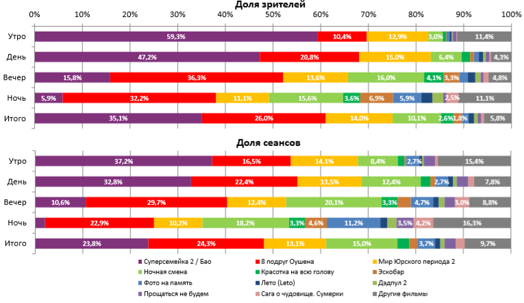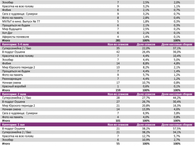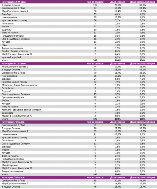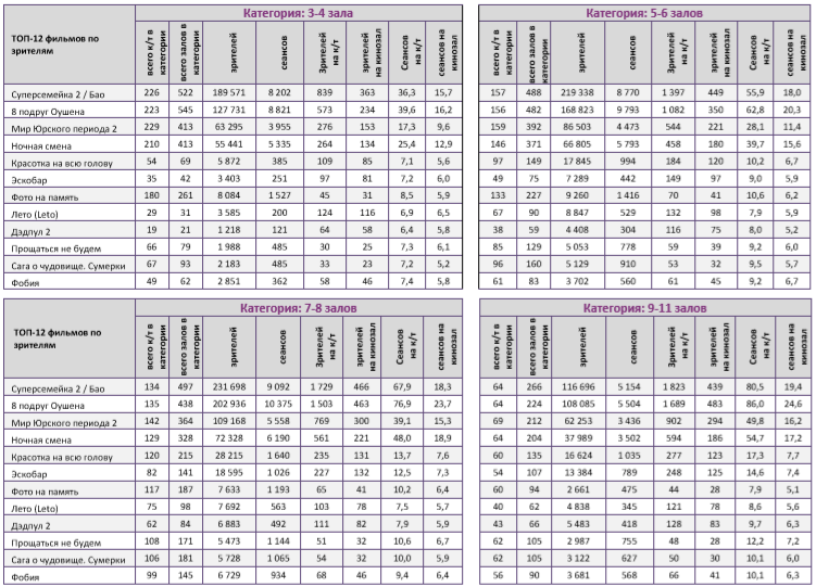 В семи лучших кинотеатрах страны лидерство разделили три франшизных проекта – новинка «8 подруг Оушена» и идущие не первую неделю «Суперсемейка 2» и «Мир юрского периода 2».