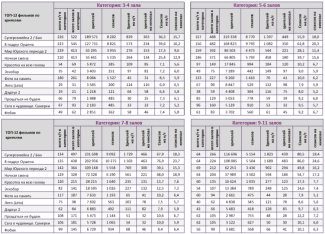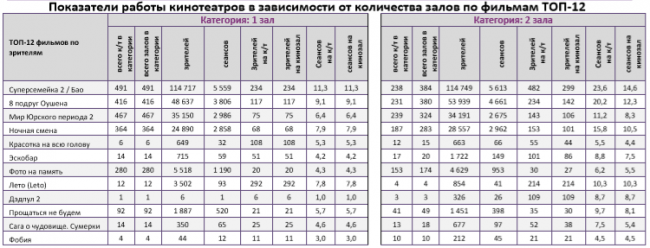 Низкие наработки на сеанс у хорроров «Сага о чудовище. Сумерки» и «Фобия» и российской военной драмы «Прощаться не будем».