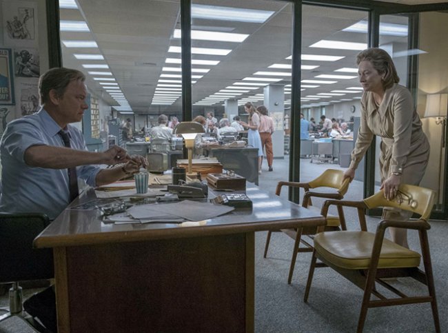 Кадр из к/ф "Секретное досье"Критики смеются, что в этой картине Спилберг подобрал для своих актеров совершенно не свойственные им амплуа. Тому Хэнксу, привыкшему играть неуверенных простачков, досталась роль амбициозного и наглого главного редактора газеты The Washington Post Бена Брэдли, тогда как Мэрил Стрип, прославившейся ролями стервозных карьеристок, выпало играть стеснительную владелицу семейного бизнеса. Причем, совершенно неожиданно никакую трансформацию из закомплексованной женщины в акулу издательского дела Мэрил не покажет (хотя на самом деле такая трансформация была). Не по сценарию.