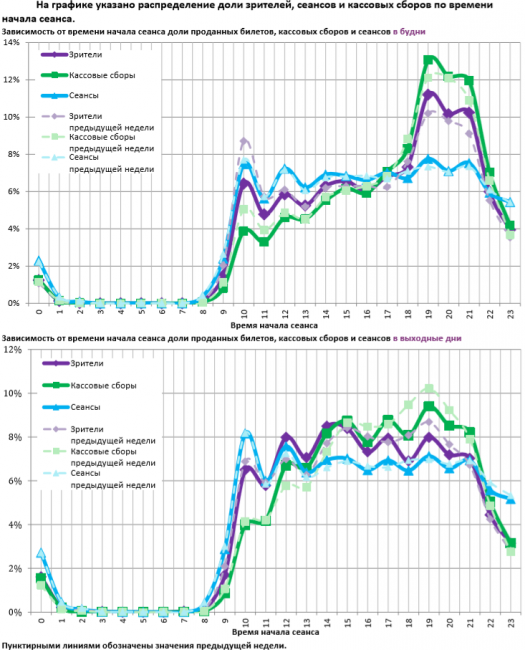 За прошедшую неделю каждый сеанс посещало в среднем 13 зрителей.