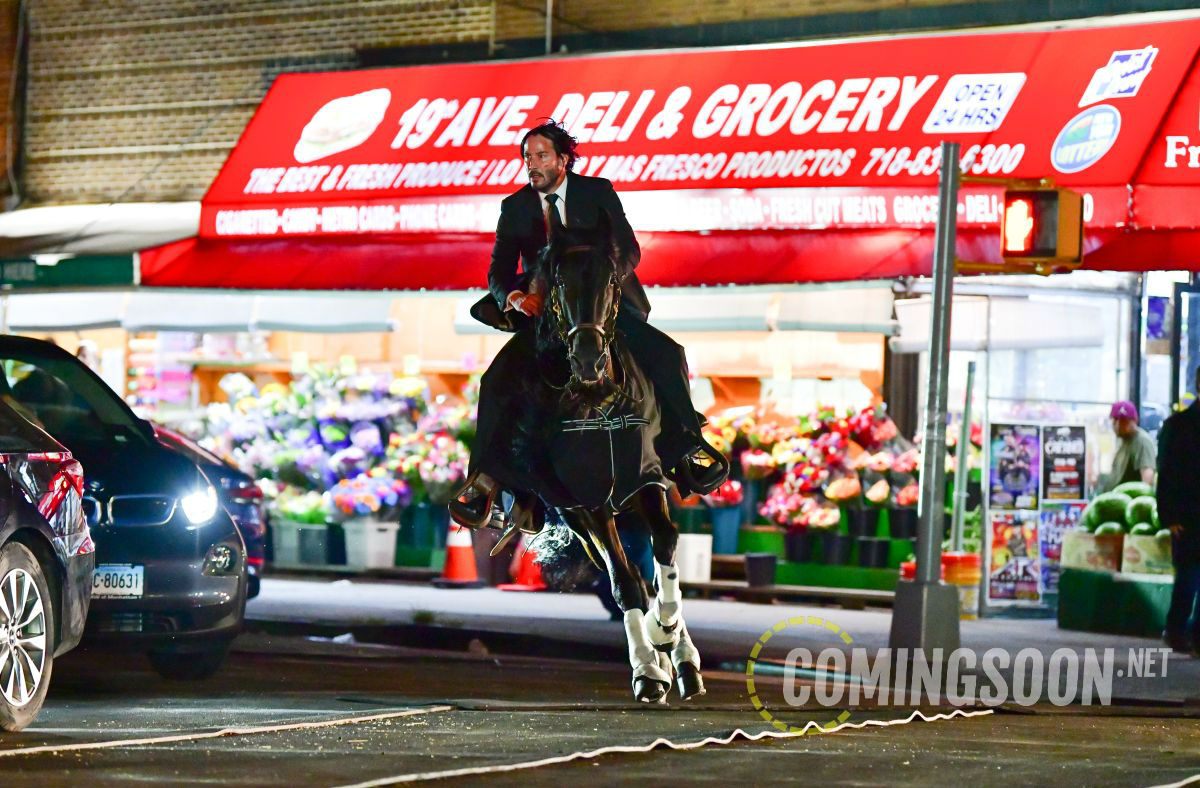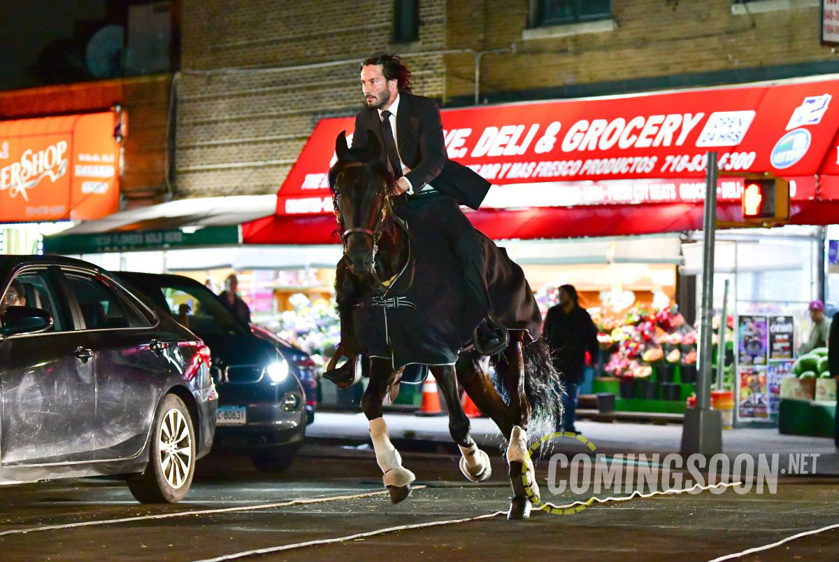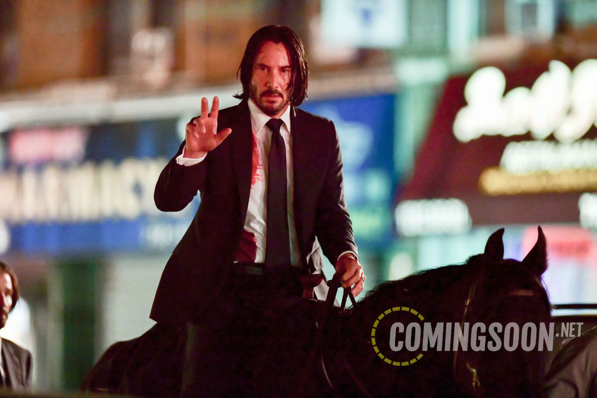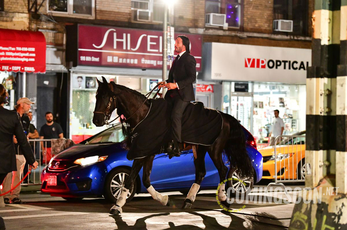 Порция фото и видео со съёмочной площадки боевика «Джон Уик 3: Парабеллум» с Киану Ривзом, рассекающим на бравом скакуне по улицам Нью-Йорка. Премьера третьего фильма о приключениях принципиального киллера намечена на 17 мая 2019 года.