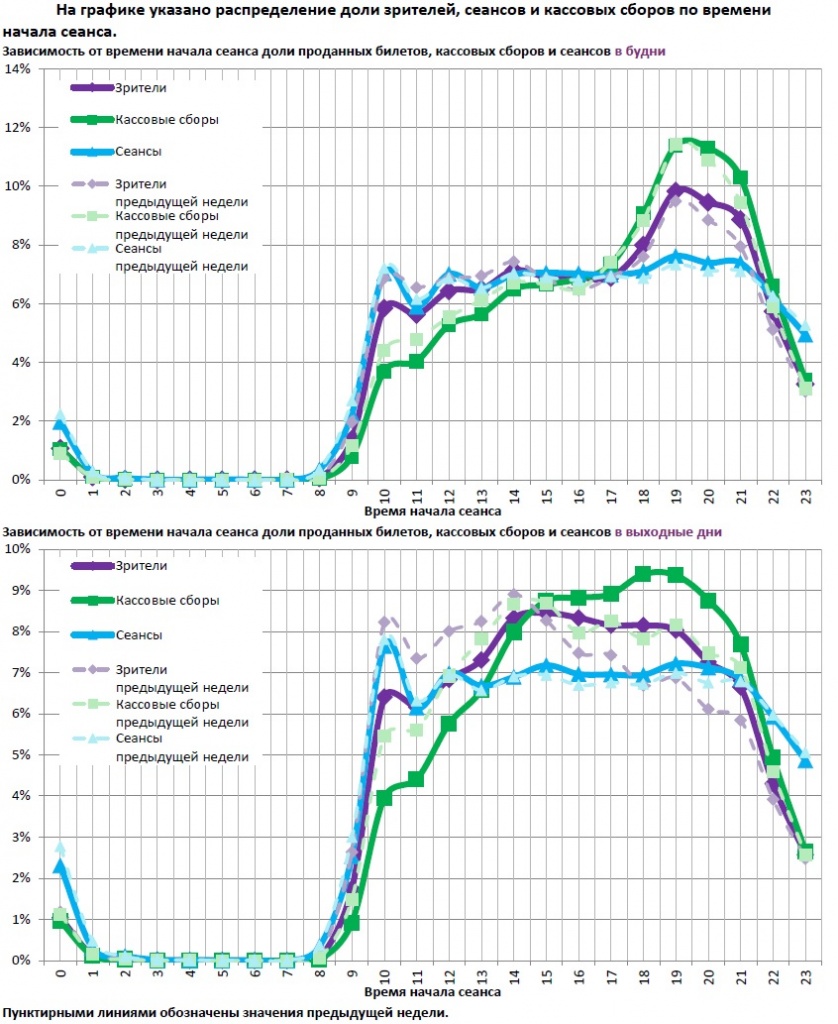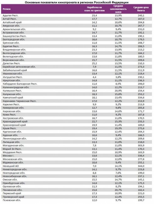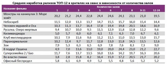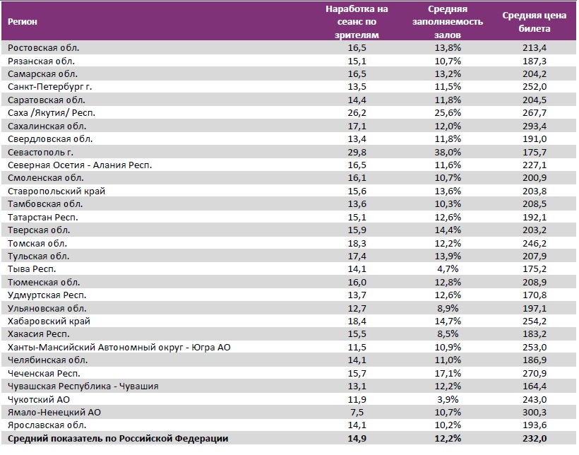 Средняя наработка на сеанс снизилась с 20 зрителей до 15. Средняя заполняемость залов в выходные дни не превышала показатель в 15%.