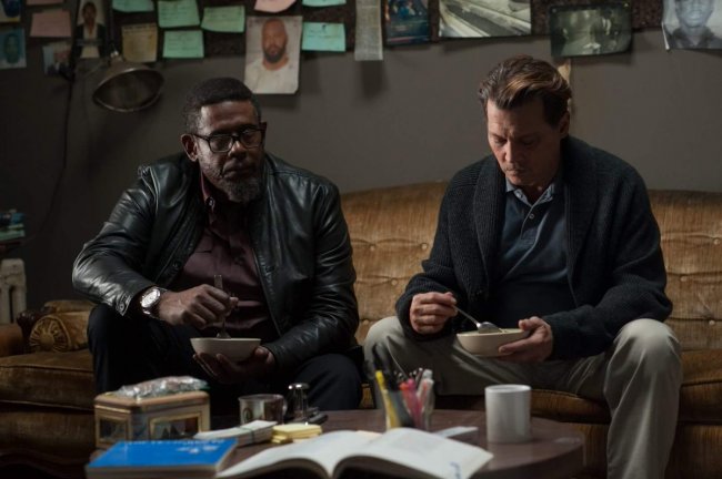 Несколько свежих кадров из криминального триллера «Город лжи», рассказывающего о расследовании убийства рэпера The Notorious B.I.G. Главные роли в фильме сыграли Джонни Депп и Форест Уитакер.
