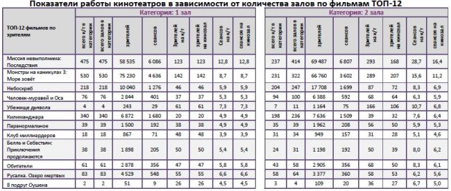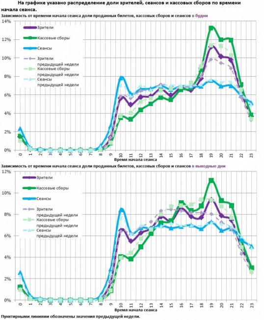 Средняя наработка на сеанс снизилась до 14 зрителей.