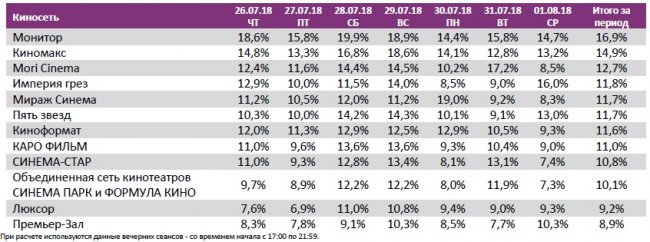 Лидером среди киносетей на фильме-лидере снова стал «Монитор».