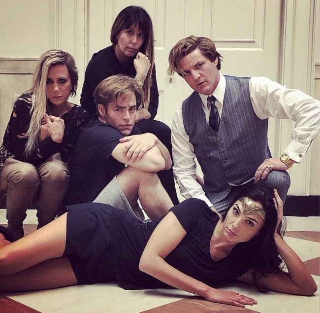 Режиссёр Пэтти Дженкинс и основные участники каста кинокомикса DC «Чудо-женщина 1984» на свежем фото со съёмок, отсылающем к классической ленте «Клуб ”Завтрак”». Релиз блокбастера запланирован на 31 октября 2019 года.