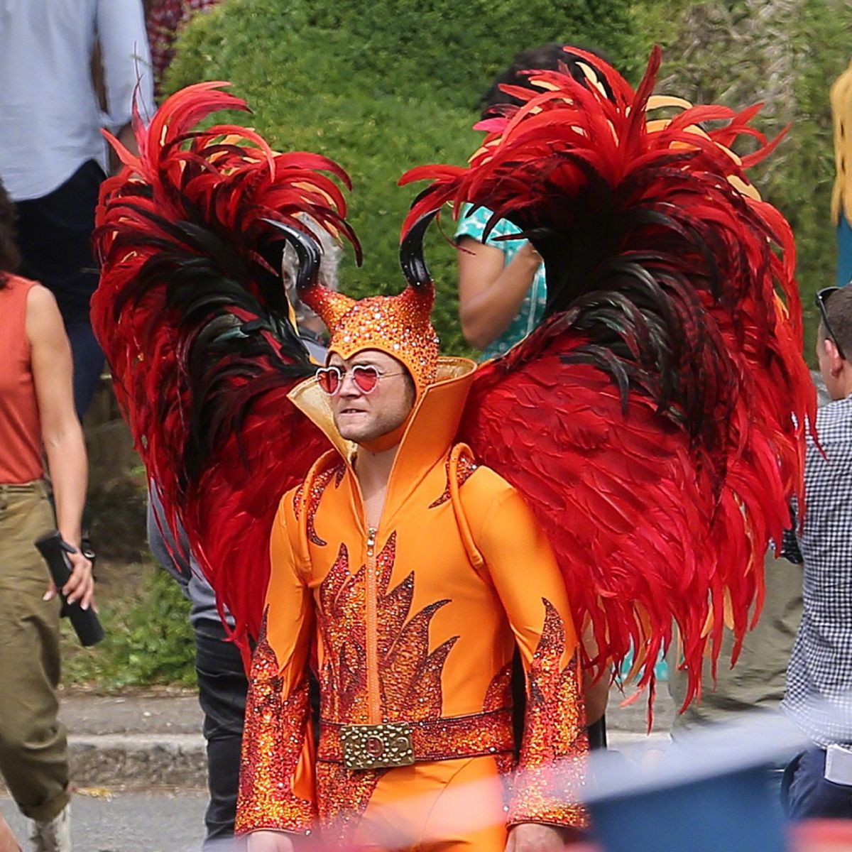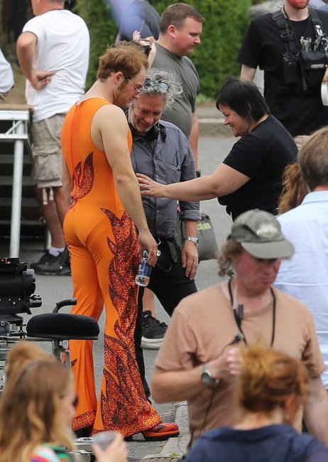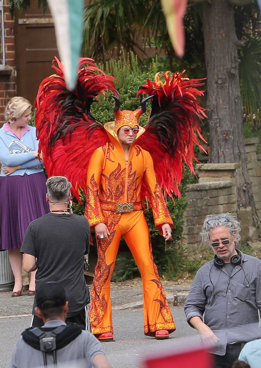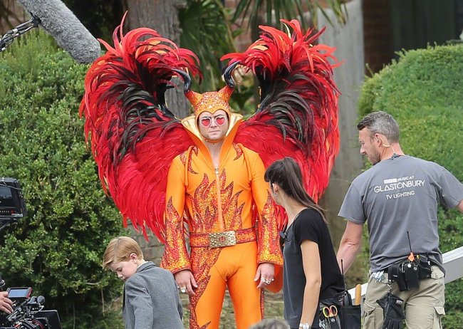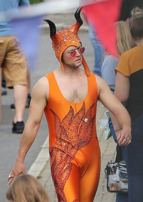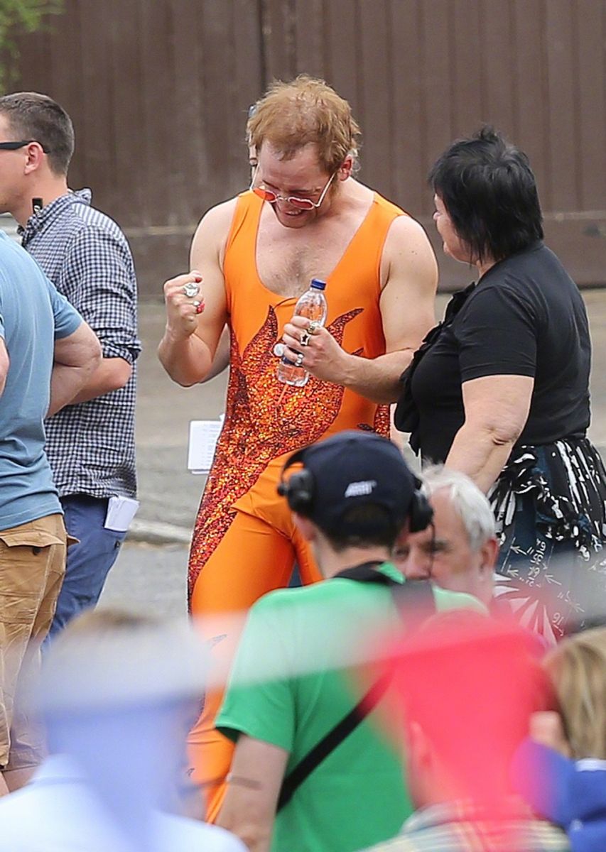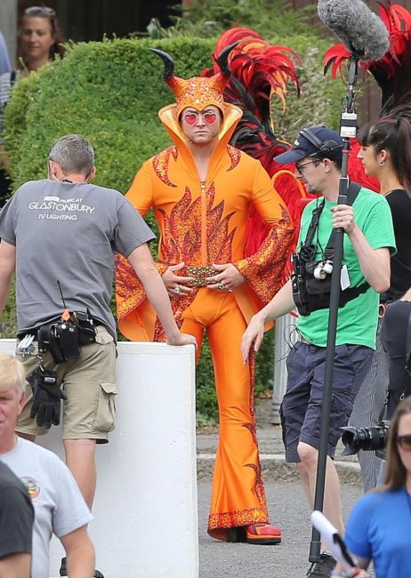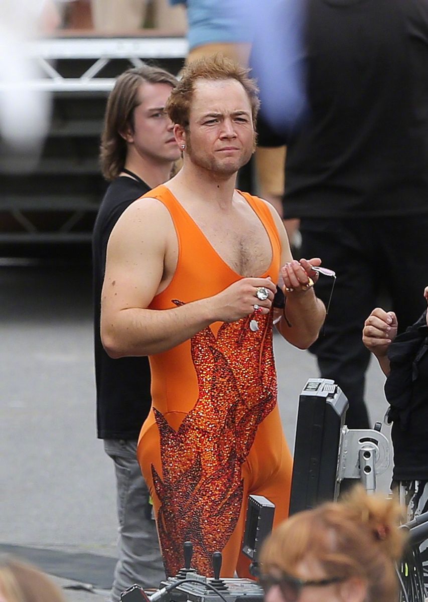В Сеть попали свежие фотографии со съёмочной площадки байопика «Человек-ракета» об Элтоне Джоне с участием звезды дилогии «Kingsman» Тэрона Эджертона, исполняющего в фильме главную роль.