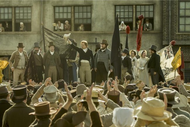 Первый фильм о знаменитой Манчестерской бойне, он снят почти что в канун ее двухсотлетия. В августе 1819г. на площади Св. Петра в Манчестере произошли столкновения между полицией и митингующими рабочими и членами их семей, которые требовали в том числе всеобщего избирательного права. Погибло 15 человек, пострадало еще около семи сотен. Это одно из ключевых событий в истории британской демократии, непосредственным его следствием было подавление реформ, но в итоге оно привело к прохождению либеральных законов через Парламент, предоставлению избирательных прав рабочим, а потом и женщинам, развитию профсоюзного движения, события того дня побудили их свидетеля Джона Эдварда Тейлора создать собственную газету для борьбы за реформу, газету он назвал Manchester Guardian, и сегодня эта та самая The Guardian. Кому как не уроженцу Манчестера Майку Ли было снимать фильм о тех днях. Самые важные сцены снимались в Линкольне – часть исторического центра города была превращена в Манчестер XIX столетия. Это самый высокобюджетный фильм Майка Ли за всю его карьеру. Североамериканские права на фильм приобрела Amazon.