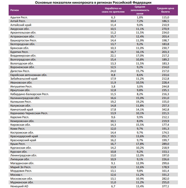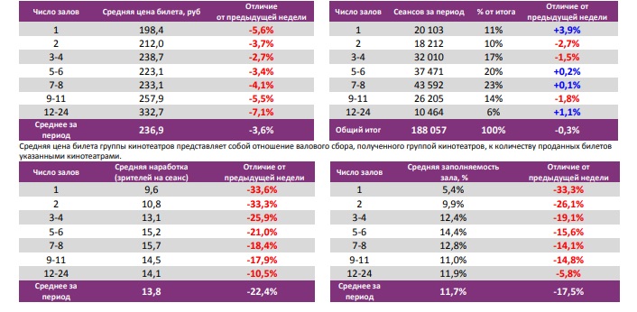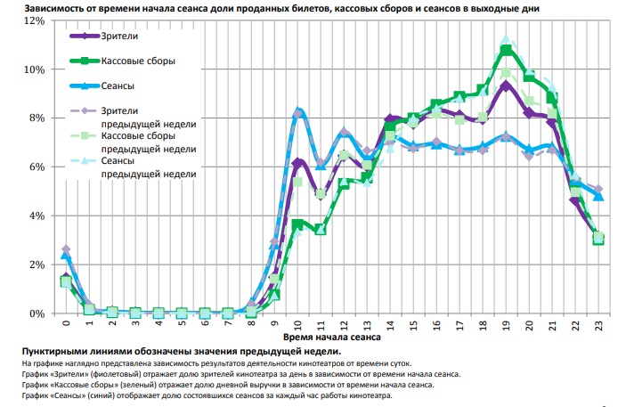 Средняя заполняемость залов в выходные дни не превышала показатель в 14%.