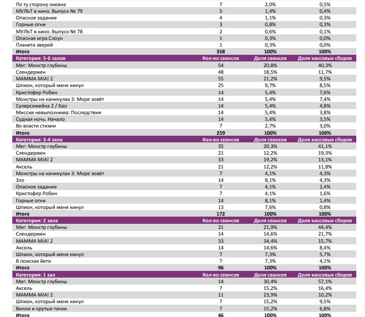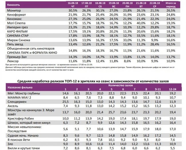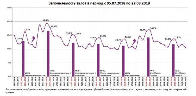 Фильм-лидер недели - «Мег: Монстр глубины». Заполняемость залов на его сеансах была наибольшей в сети кинотеатров «Монитор» - выше 25%.