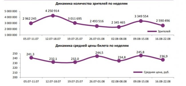 Статистика Фонда кино отражает информацию об основных результатах проката, лидерах недели по сборам и наработке на сеанс, показателях работы кинотеатров, эффективности репертуарного планирования, а также о соотношении долей по сборам, зрителям и сеансам в рамках данного периода.