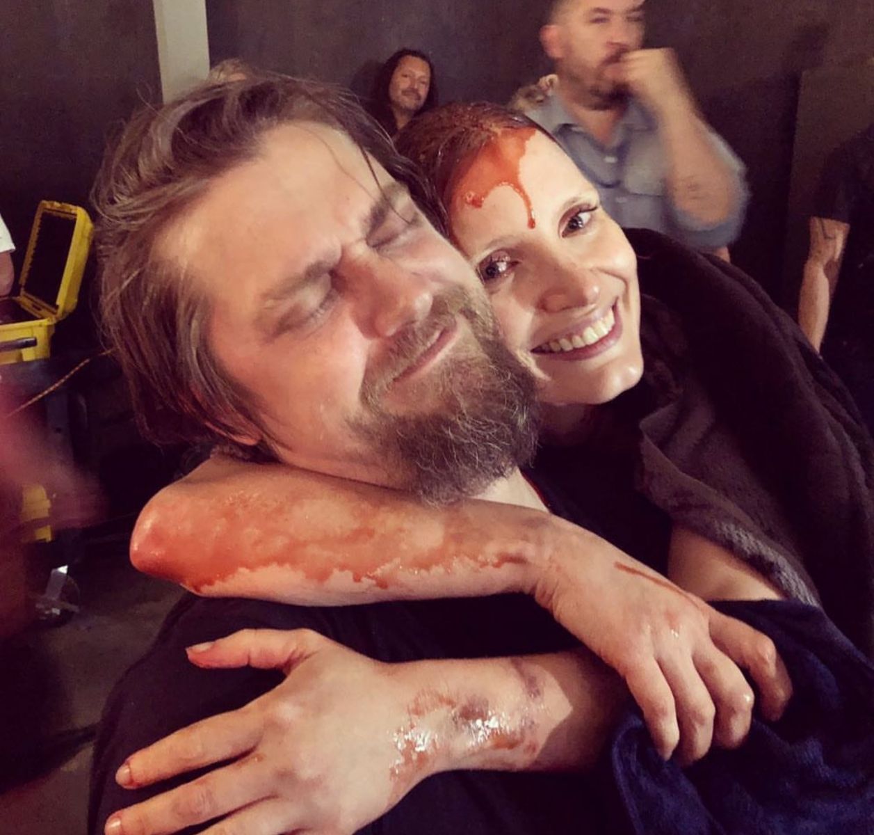 Режиссёр Энди Мускетти и Джессика Честейн на новой фотографии со съёмок второй части фильма ужасов «Оно». Российская премьера ленты по роману Стивена Кинга ожидается 6 сентября 2019-го.