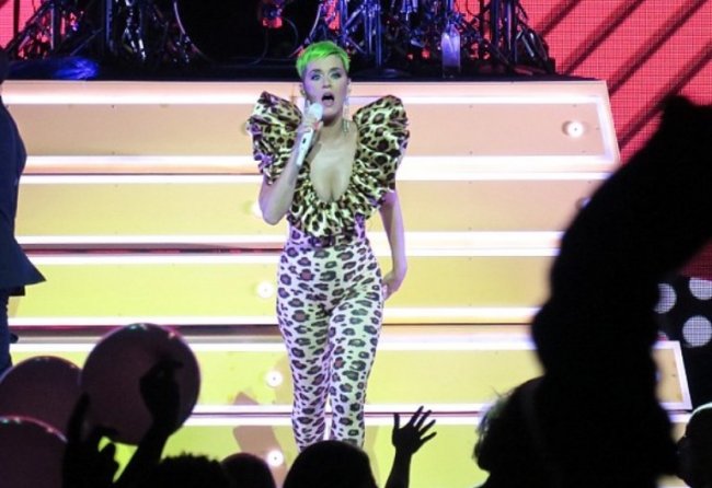 33-летняя поп-исполнительница не боится экспериментировать над собственной внешностью. Не секрет, что популярная певица успела изменить несколько оттенков волос, а также предстать в разнообразных амплуа всего за 11 лет успешной карьеры. Тем не менее, звезда сцены не намерена останавливаться, поэтому сегодня Кэти Перри вновь удивила поклонников. Исполнительница хита "I Kissed A Girl" прибыла в Лос-Анджелес, где дала сольный концерт на одном из самых больших стадионов города. При этом знаменитая американка предстала в облегающем комбинезоне с модным анималистическим принтом, украшенном декоративным воланом и глубоким декольте. Также поп-дива дополнила образ, используя серые кроссовки, но все взгляды фанатов были прикованы к оригинальной прическе знаменитости.
