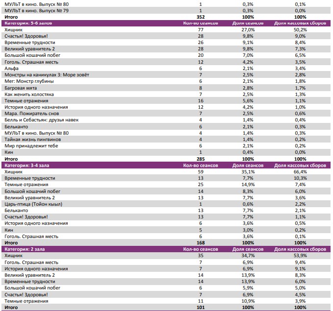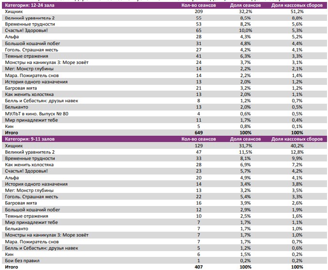 «Гоголь» и на третьей неделе сохранил широкое присутствие в однозальниках - 498 площадок, несмотря на выход прямого конкурента.