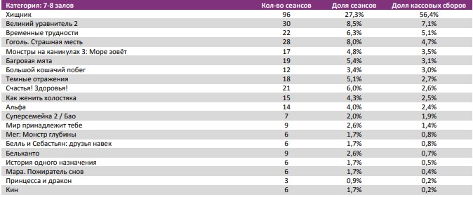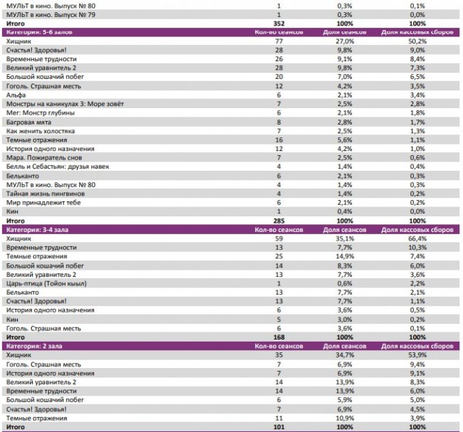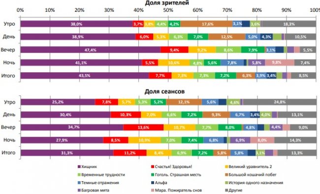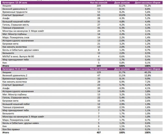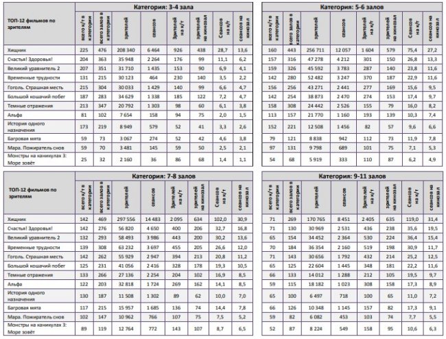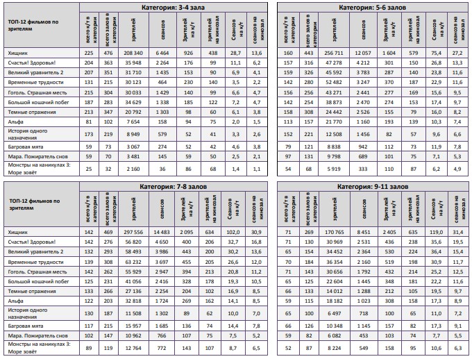 «Хищник» стал лидером во всех самых успешных кинотеатрах недели, показав долю сборов 40-71%.